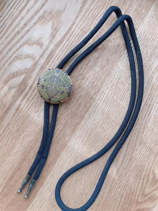 向かい鶴のループタイ(緑)